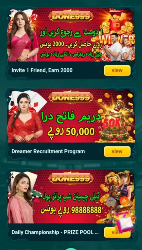 Done999 Game is changing how people think about mobile gaming in Pakistan. This guide will show you exactly how Done999 works. You will learn how to start earning how to cash out your rewards and how to use local payment options like EasyPaisa and JazzCash or direct bank transfers. These measures reduce the risk of unauthorized access and provide solutions if any login problems happen. For users who care about account safety this setup is very reassuring. Whether you want to make pocket money or build a steady side income this review will help you decide if Done999 is the right choice for you. App is designed for users and players who want entertainment along with the chance to earn real cash. It features modern slot games and offers some great features especially for new users who are just getting started.